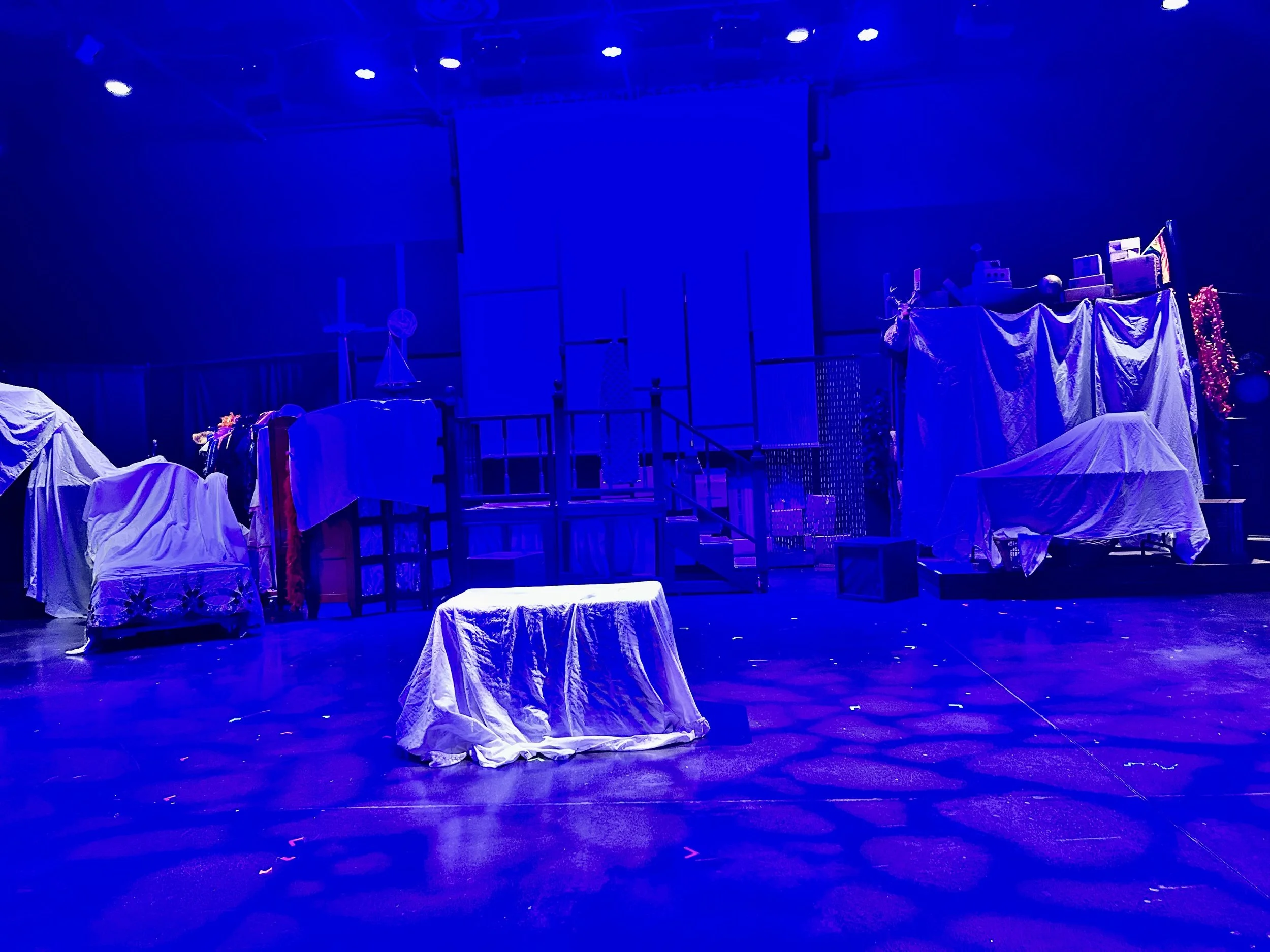 The story unfolds with dozens of imaginative props created by Elise Knox, revealed as the play begins. These props are cleverly used and skillfully handled by the talented ensemble players, Rae Harvill and Shaun “Willow” Breland, who produce everything from sound effects to bubbles, and also take on small roles in the production. A large screen in the background frequently changes color to enhance the scenes. Josh Hensley designed the lighting and sound, while Rodney Dobbs crafted the set. Michael Robinson and Dallas Costume Shoppe contributed the excellent period costumes.