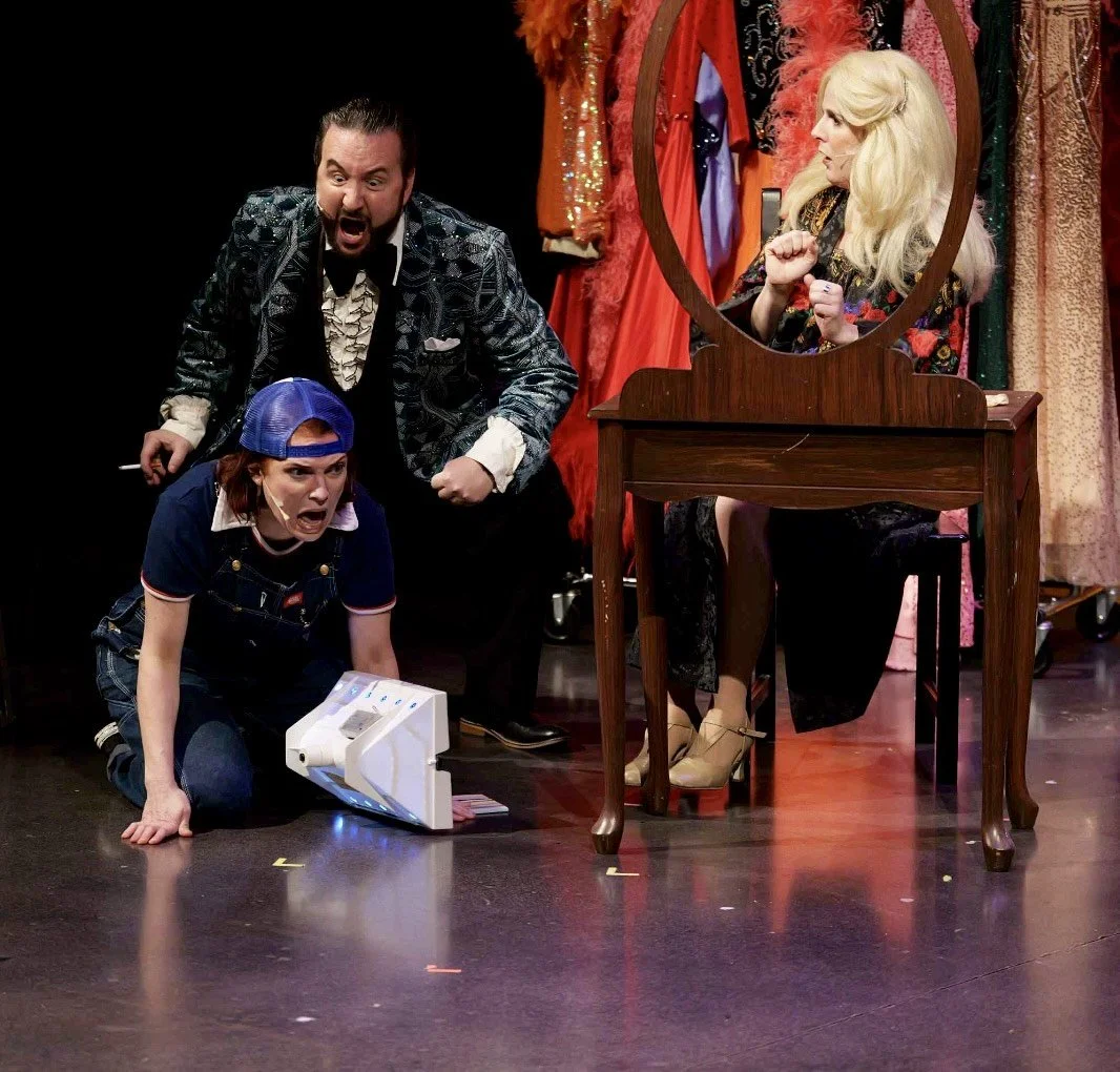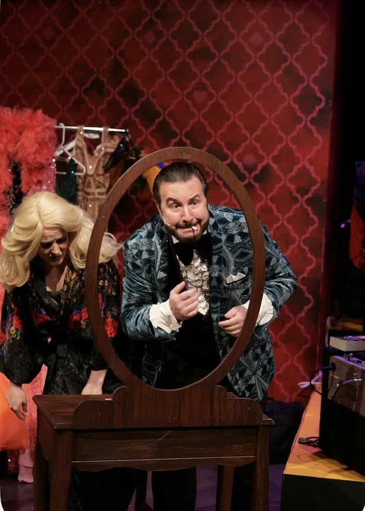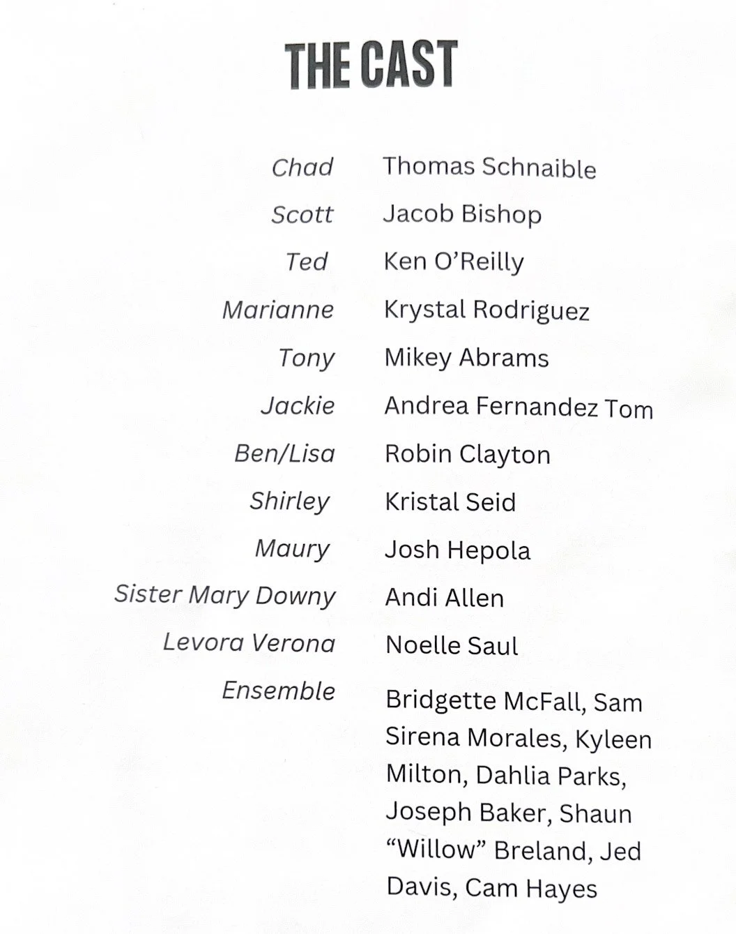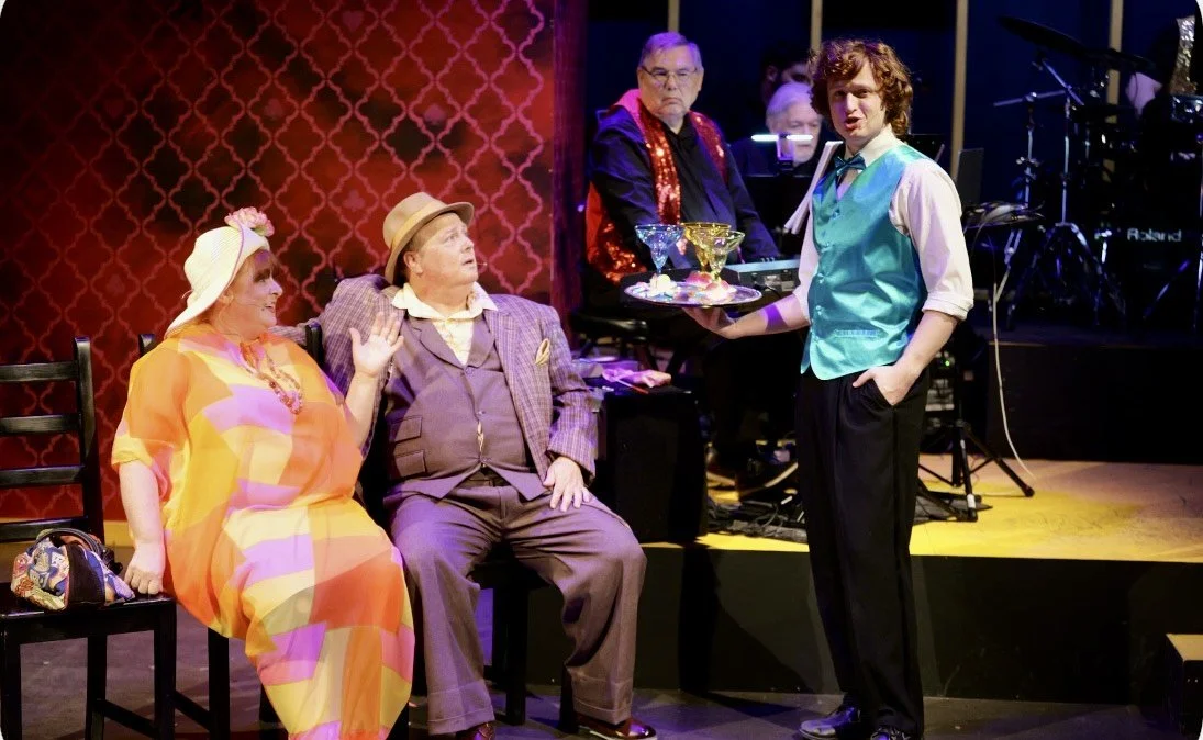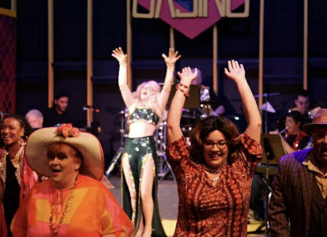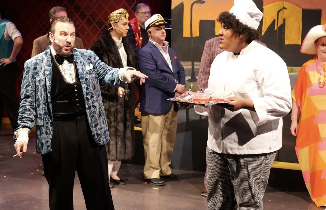 Mikey Abrams is Tony Del Vecchio, the unscrupulous, womanizing owner of the floating casino. Abrams is so brilliantly immersed in this sleazy, cocky, money-grubbing con man that I could barely recognize my favorite realtor. He makes the dastardly character a delight to watch. Andrea Fernandez Tom is the aging cabaret singer Jackie. Jackie, the mother of twins and still attractive, hopes that her current boyfriend Tony will finally be the one. She’s not the brightest bulb on the marquee and Tom captures all of Jackie’s exasperation and loveable ditziness. She also gets to belt out that most well-known of 70’s anthems, “I Will Survive.” As Jackie’s twins Ben and Lisa, Robin Clayton is a marvel of comic timing, often changing from one twin to another in a matter of seconds. In one of the best and funniest scenes in the show, the twins perform a trio of “When Will I Be Loved” with their mother and Clayton’s performance as two thirds of the trio drew extended applause from the audience.