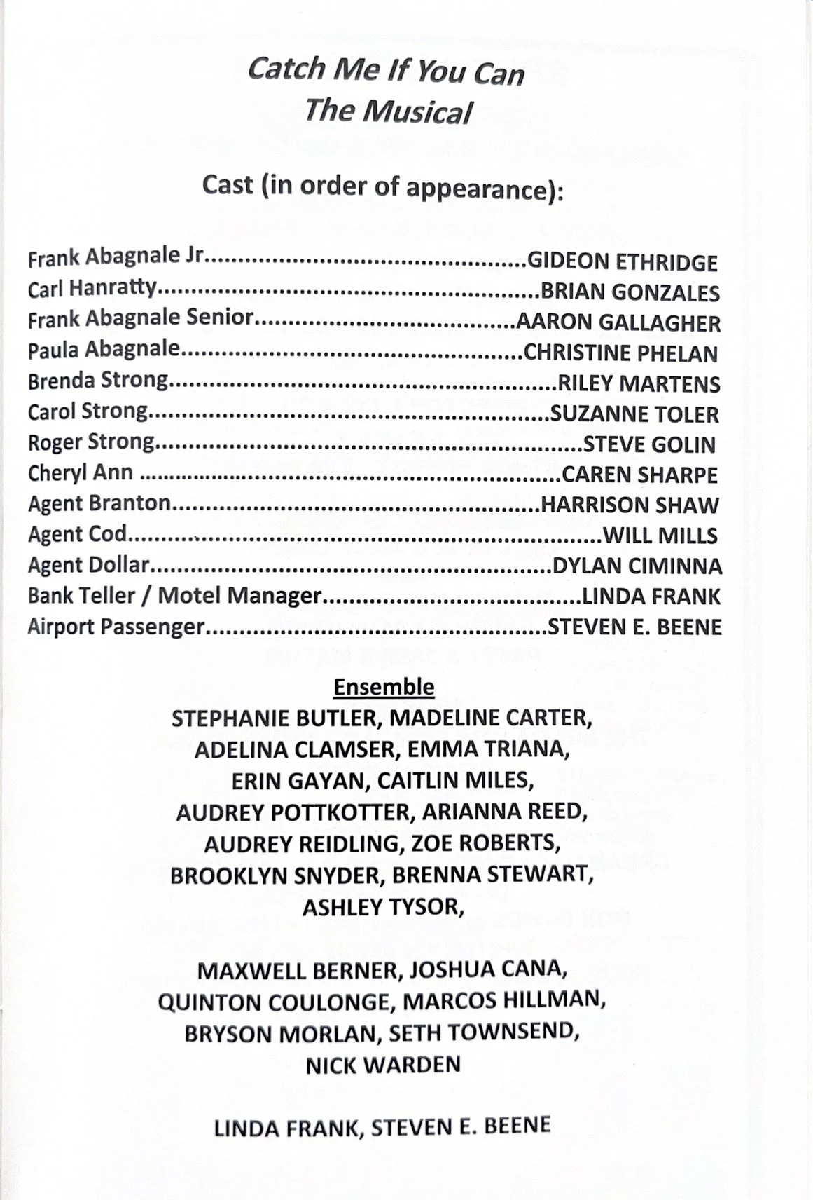 There are many outstanding performances in Catch Me. Will Mills, Harrison Shaw, and especially Dylan Ciminna, who can get a laugh just with a look or a gesture, are comical as the FBI agents.