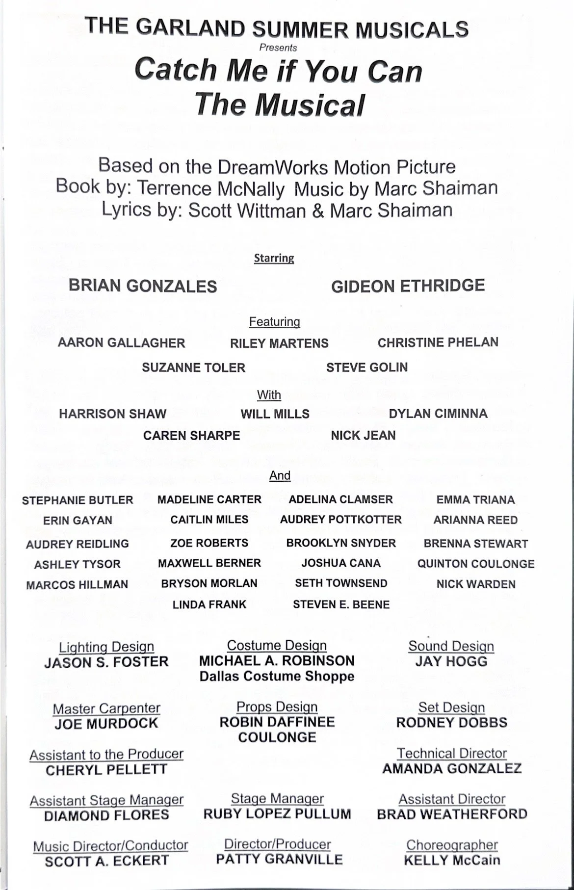 It goes without saying that Director Patty Granville knows her way around a musical comedy and this time she hits a great big homer. Garland Summer Musicals’ Catch Me If You Can is musical theater gold. Catch it while you can.