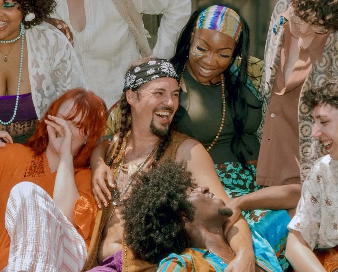 There’s plenty of psychedelic colors on the set designed by Allison Kline and scaffolding for the cast to climb and swing on and Beauty Thibodeau’s costumes are period perfect. There’s excellent lighting by Caroline Hodge and projections by Chanlyr Jordan. Movement Director Avery-Jai Andrews and Assistant Choreographer Willow Dubose make this immersive production come alive with inventive moves and dances that reflect the time period but feel fresh and new. Music Director Brandon Tyner and Vocal Director Dameron Growe have the production’s musical numbers soaring with a band that includes both Tyner and Growe and Kevin Martinez, Sienna Riehle, Wheeler Sparks, Lindsey Hertel, and Jeriah Mitchell. A special shout out to Dameron Crowe whose amazing vocal prowess brought power to the numbers when he became part of the tribe.