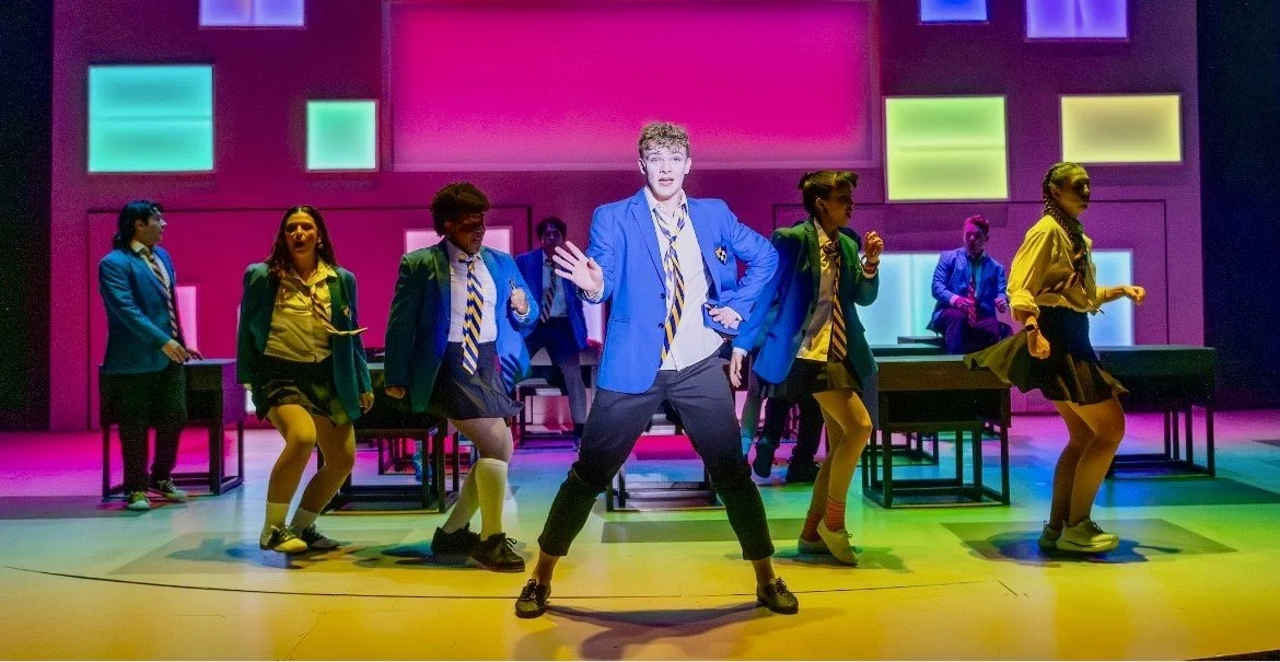 Jamie’s singing, dancing, and wanna be wild school chums who bring endless energy to the production include Sophie DeYoung, Carlos Gutierrez, Hunter Hurt, Ania Lyons, Dave Mar, Steven Rios, Abriela Rodriguez, and Gabriela Yarbrough.