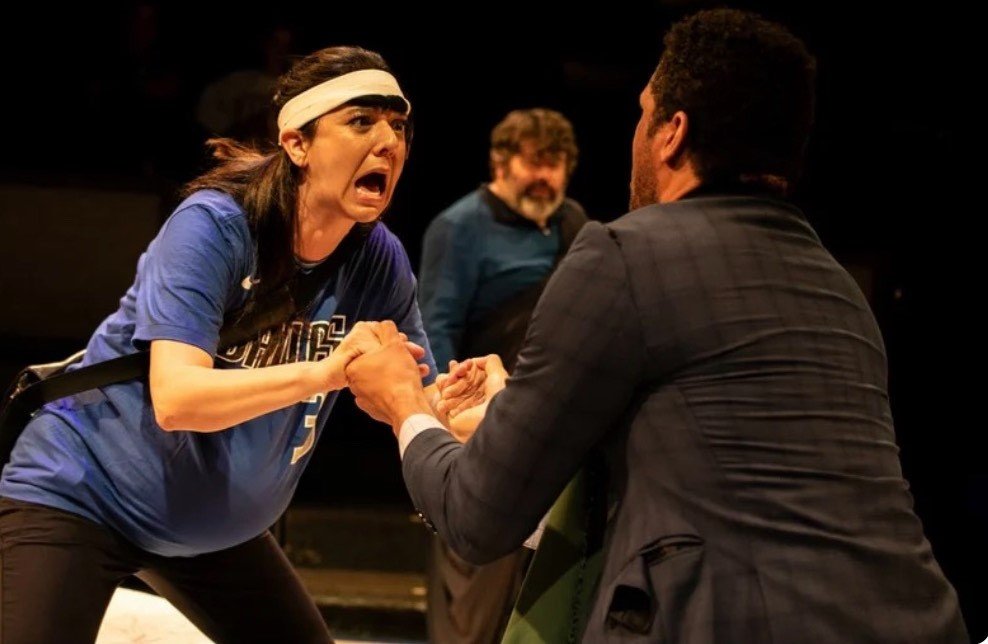 This play, briskly directed by co-author Matt Lyle, will amuse even if you’ve never seen a basketball game. There is so much here that entertains, from the Greek Chorus (Chad Cline, Davian Jackson, Jeff Swearingen, and Elizabeth Evans) and their leader (Brian Gonzales) to the berated, exasperated, and insult-inundated Dallas Mavericks Manager, Nico Harrison (Quintin Jones Jr) to the audience participation, the comedy is almost non-stop in this clever retelling of Harrison’s trading of fan favorite Luka Doncic to the LA Lakers for Anthony Davis earlier this year.