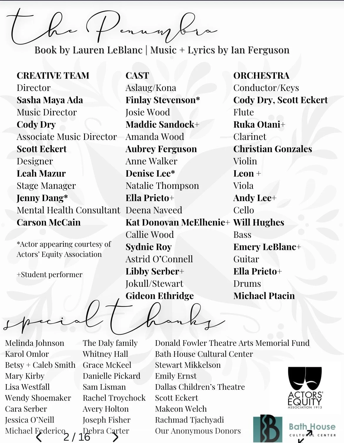You have one more chance to see The Penumbra workshop tonight Thursday August 21 at 7:30 at the Bath House Cultural Center. I would cancel plans to go and be there at the beginning of this fascinating new musical’s journey.