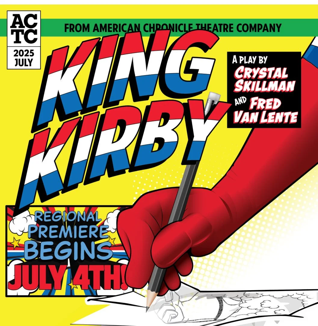 A LIVE THEATRE MOTION COMIC CHRONICLING THE LIFE AND CREATIONS OF JACK "KING " KIRBY. It's the ultimate origin story! That of Jack "KING" Kirby. Follow him from the tough Jewish ghetto of Hell’s Kitchen in New York, to the harrowing battlefields of Normandy during WWII, to tense Senate hearings in the 1950s. Watch as he creates some of the most iconic heroes in pop culture: Captain America, Thor, the Fantastic Four, the X-Men, Iron Man, the New Gods, and countless others. Take his hero's journey as Kirby pours his quintessentially Twentieth Century life into his comics, only to make a fateful mistake that sends him into obscurity while his creations become among the most recognizable in the world.